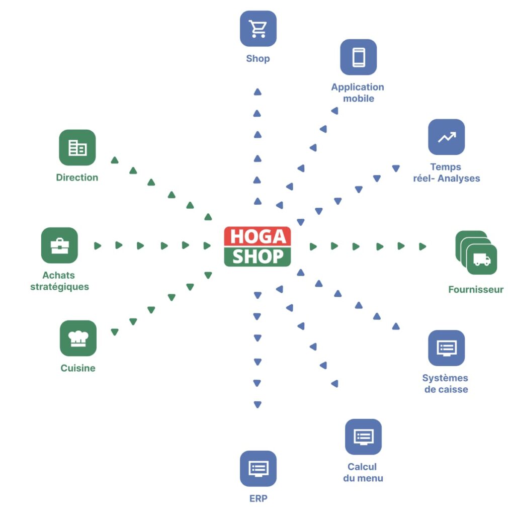 Vous pouvez lier HOGASHOP à votre ERP, à votre système de caisse et à d’autres systèmes – et utiliser ainsi dans tous les systèmes les données de produits de tous vos fournisseurs. Epargnez-vous les innombrables interfaces avec les nombreux systèmes de chacun de vos fournisseurs, et donc beaucoup de temps, d’argent et d’efforts.
