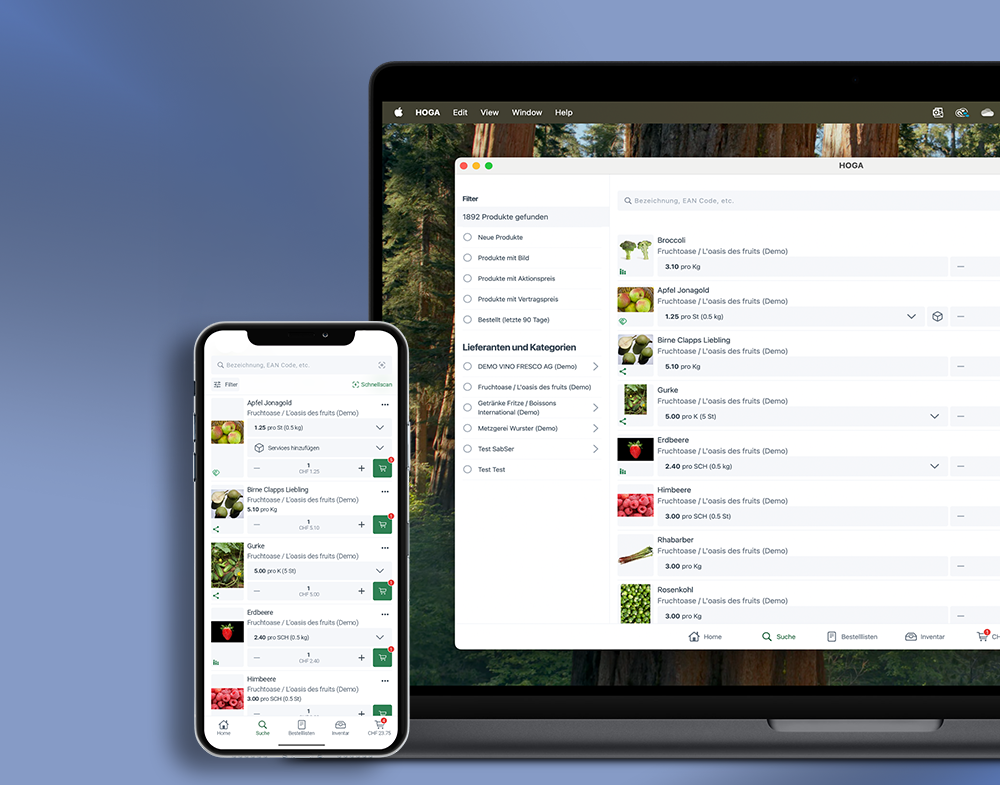 Die HOGASHOP App ist für iOS, Android sowie macOS (Apple Silicon) verfügbar und bietet eine einheitliche, intuitive Benutzeroberfläche auf Smartphone, Tablet und Desktop. Am Ende der Seite finden Sie ausserdem ein Logo-Paket zum Download.
