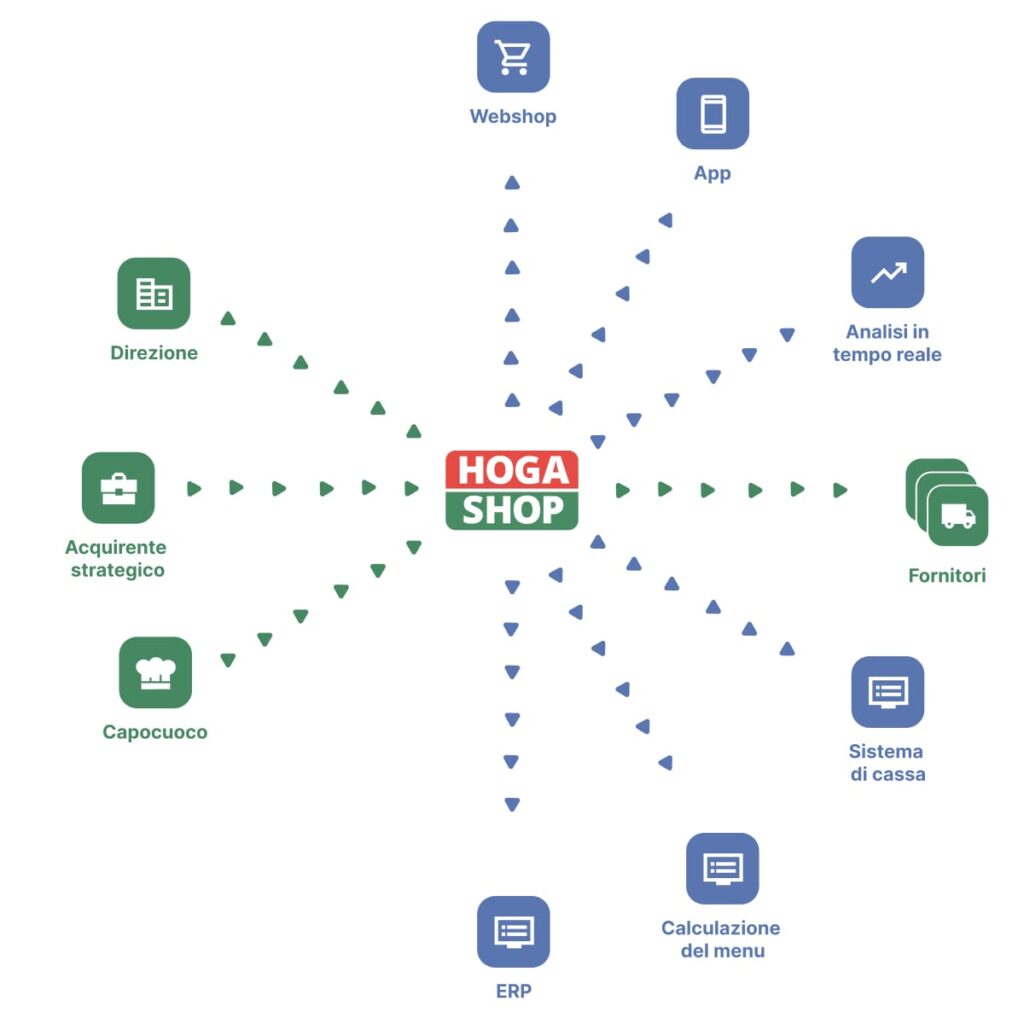 Potete collegare HOGASHOP al vostro ERP, al vostro sistema di cassa e ad altri sistemi, e quindi utilizzare i dati dei prodotti di tutti i vostri fornitori in tutti i sistemi. Risparmiate le innumerevoli interfacce con i sistemi dei vostri fornitori e quindi un sacco di tempo, denaro e fatica.