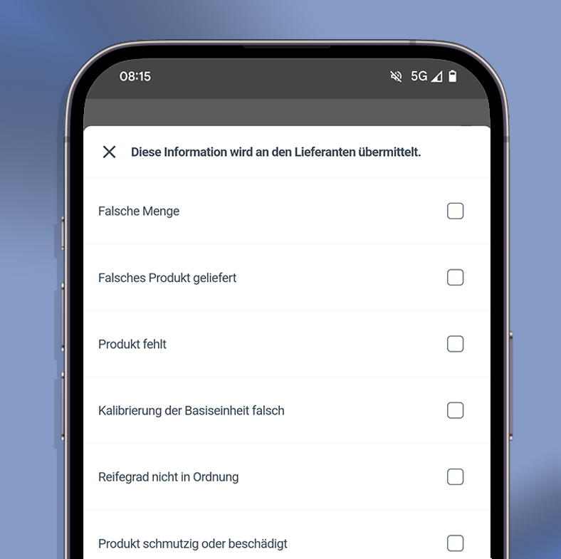 Mängel auf Bestell- oder Produktebene können sofort an Ihre Lieferanten gemeldet werden – per App oder am PC.